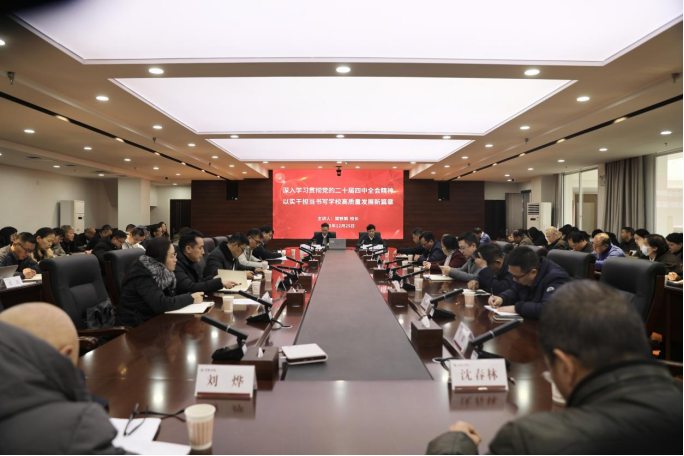 12月25日,学校处级干部学习贯彻党的二十届四中全会精神培训班第六次专题辅导在九思楼八楼会议室举行。校长樊铁钢作专题宣讲,校党委副书记马力主持会议,全校处级、副处级干部参加培训。